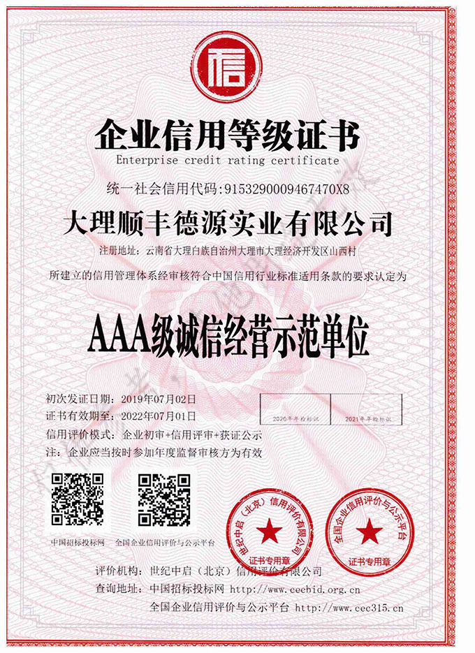 AAA质量、服务诚信单位